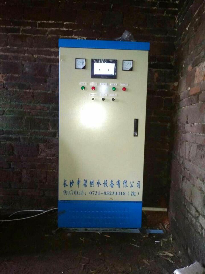 耒陽馬阜嶺公園工程第一標段安裝我司一套11kw無負壓變頻增加供水設備!控制方式:一用一備;半山腰上有一個250噸的混泥土水池,專門用來綠化澆水,2016年5月份采購我公司一套無負壓變頻增壓供水設備,配有600*1350mm的不銹鋼穩流罐和100L的隔膜式氣壓罐。由7寸觸摸屏PLc自動控制。目前已正常通水正常使用。
