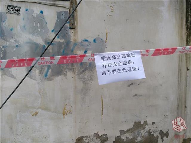 江愛華介紹,因該小區沒有入住,所以樓頂水箱里沒有蓄水,加之長期沒有養護保管,造成水箱下面的螺帽生銹松動,在大風下就被刮動,“下面是主要通道和磚木架構的房屋,萬一掉下來,后果不堪設想。”