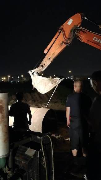 工人在連夜施工