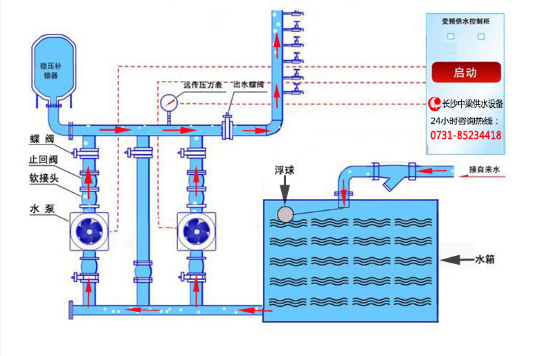 三、恒壓變頻供水系統(tǒng)工作示意圖: